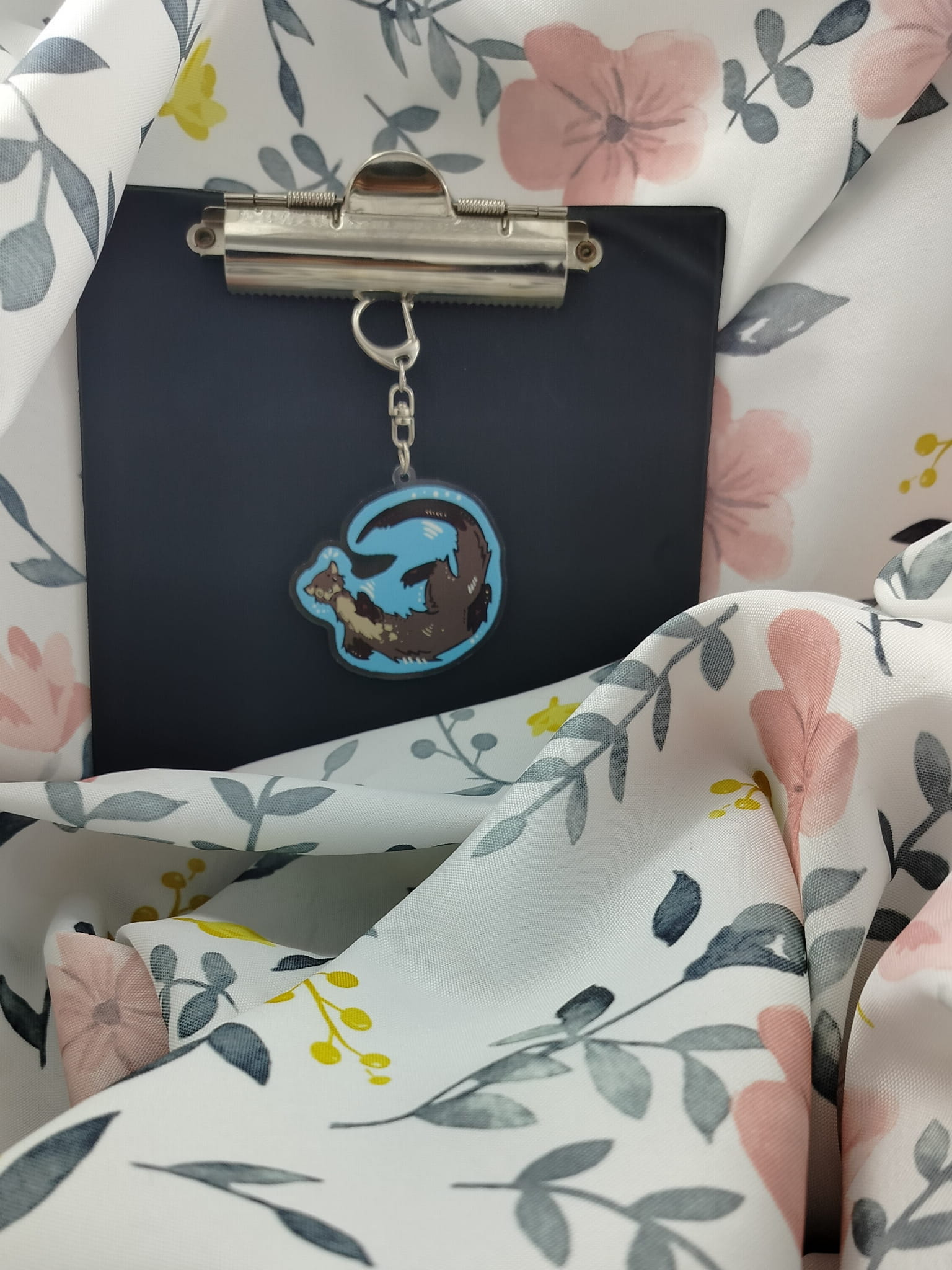 Brelok dwustronny z ilustracją wydry, zaprojektowany przez Louiego. Rozmiar ok. 6cm.