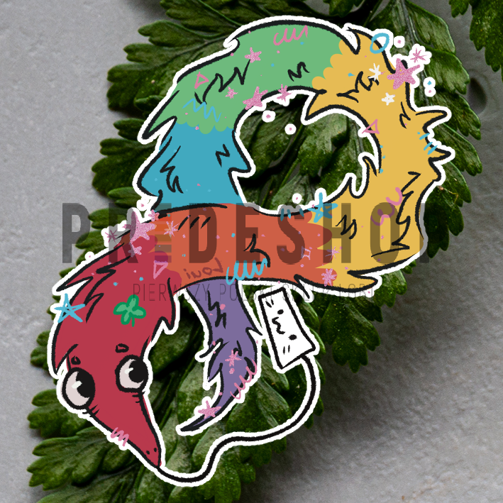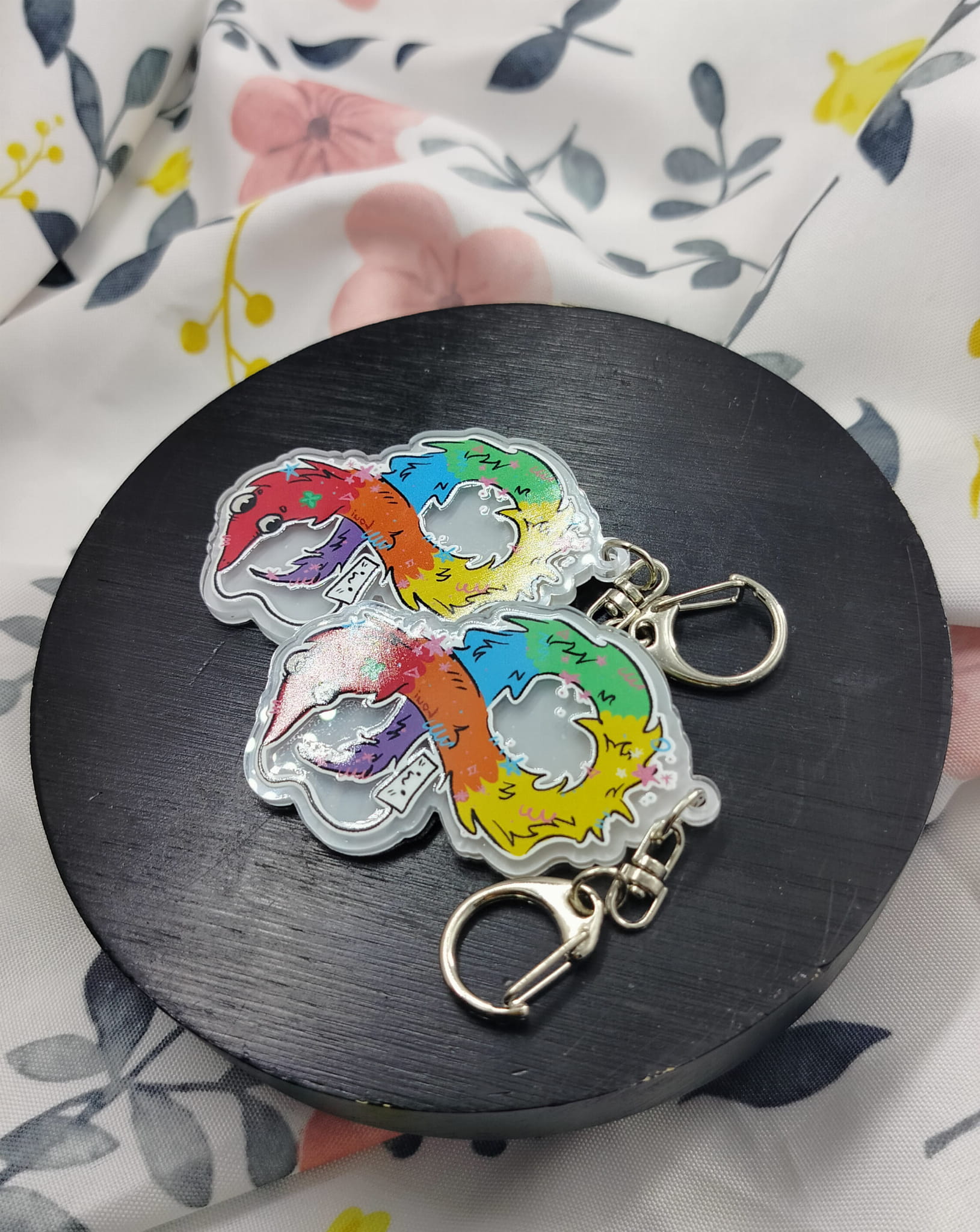 Brelok dwustronny z ilustracją tęczowego robaka-stringworma, zaprojektowany przez Louiego. Rozmiar ok. 6cm.