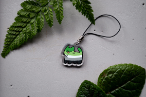 Przeuroczy charm do telefonu w kształcie kotka z flagą aromantyczną. Dwustronny.