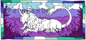 Wzór autorstwa Roth, przedstawiający ilustrację stworzenia w palecie barw flagi gejowskiej (MLM)