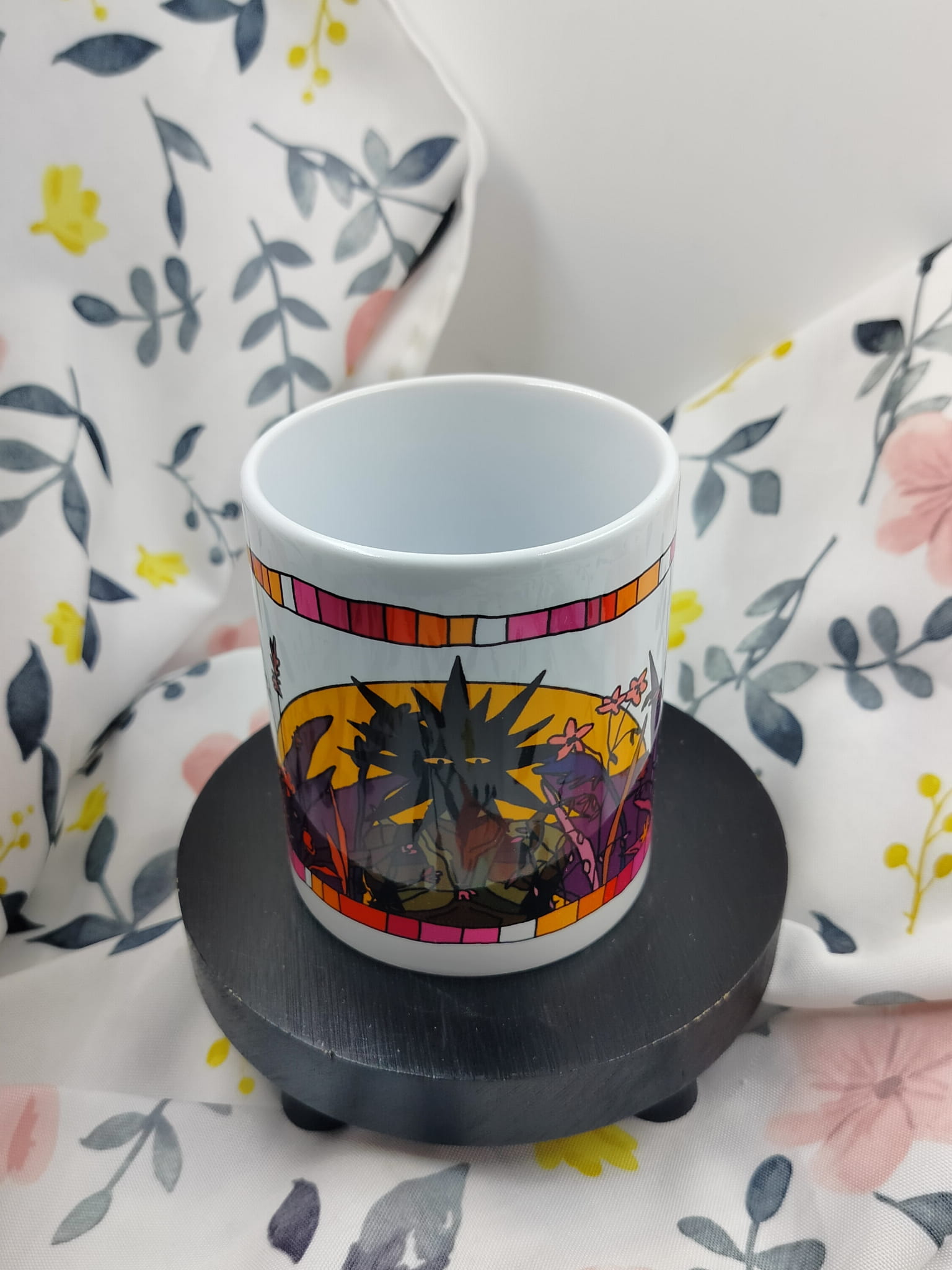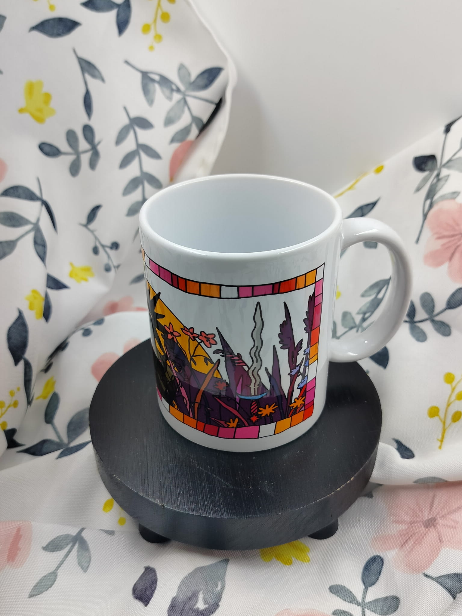 Wzór autorstwa Roth, przedstawiający tajemniczą postać tworzoną w palecie kolorów flagi lesbijskiej.