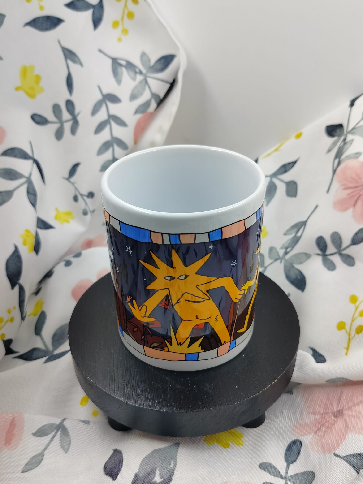 Wzór autorstwa Roth, przedstawiający ilustrację dwóch stworzeń w palecie flagi transpłciowości.
