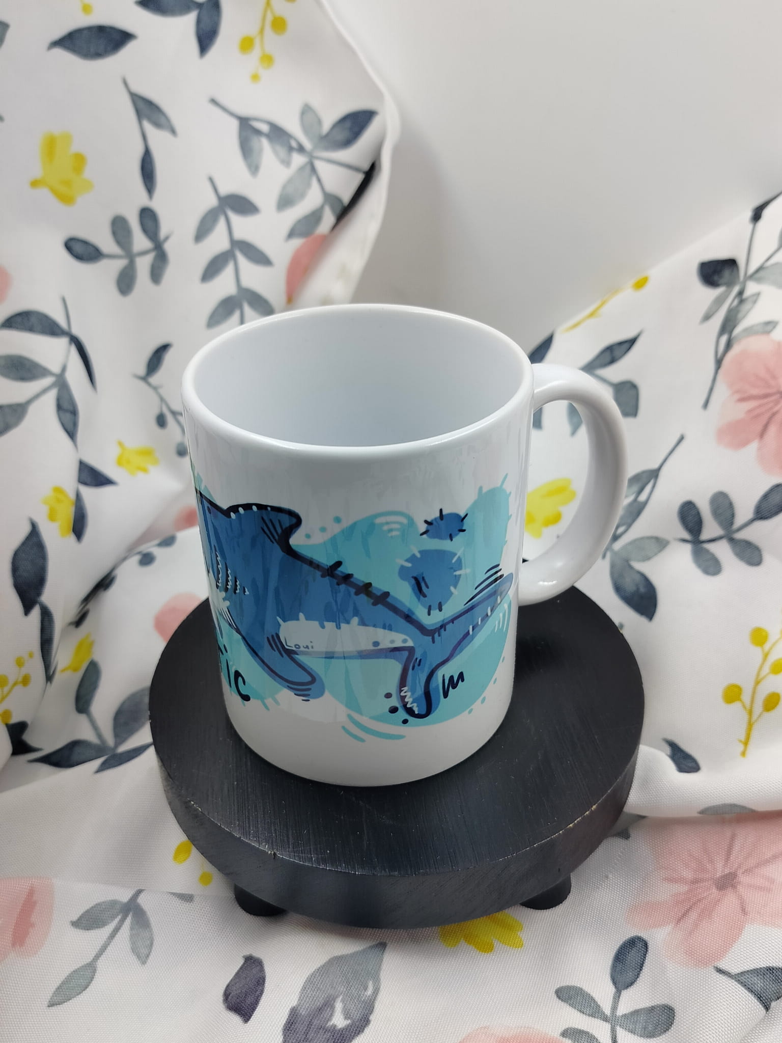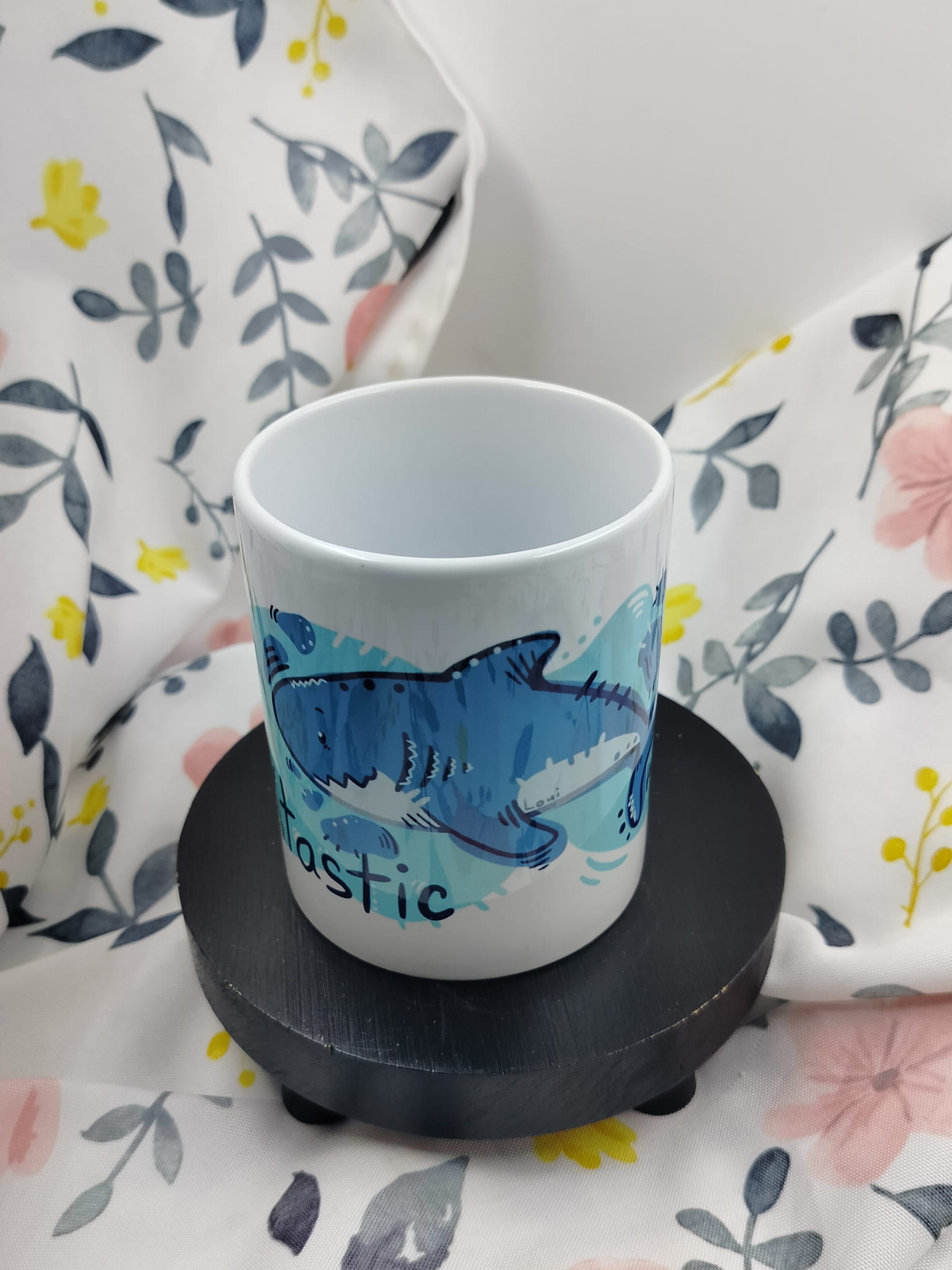 Kubek autorstwa Loui z ilustracją rekina.