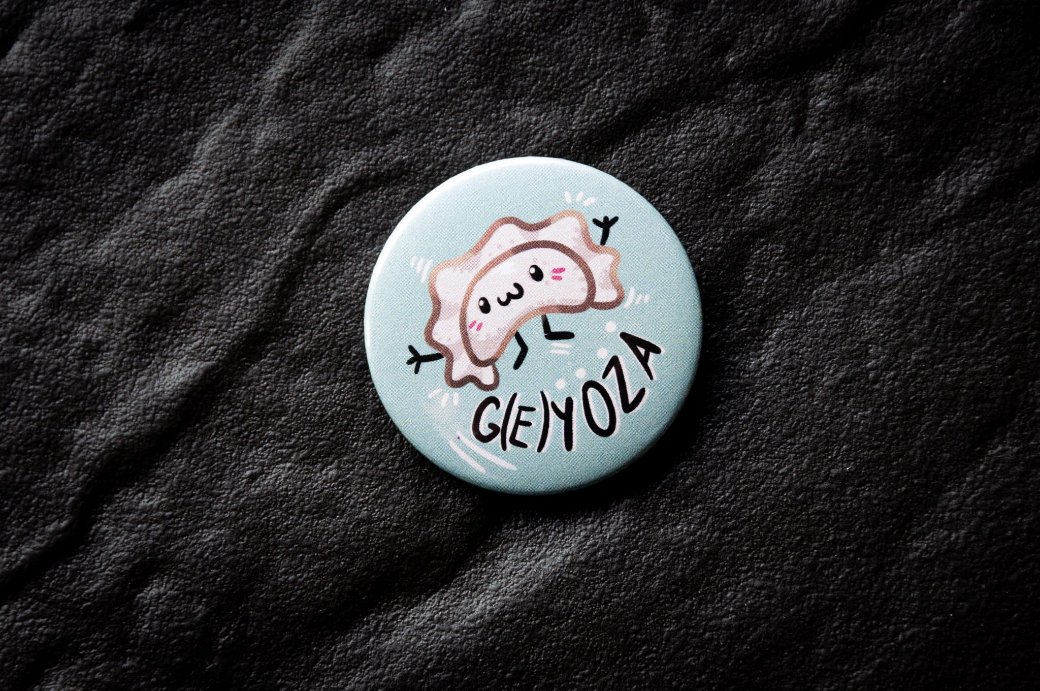 Wzbogać swoją kolekcję gadżetów LGBTQIA+ naszą przypinką o średnicy 44mm, przedstawiającą uroczą ilustrację pierożka z napisem "G(e)yoza"