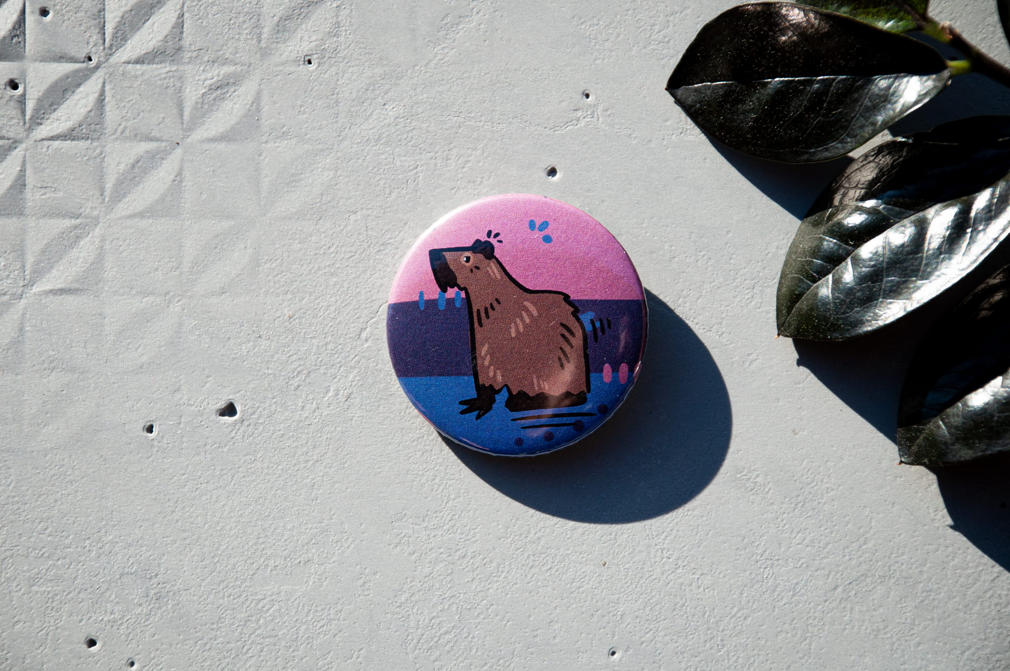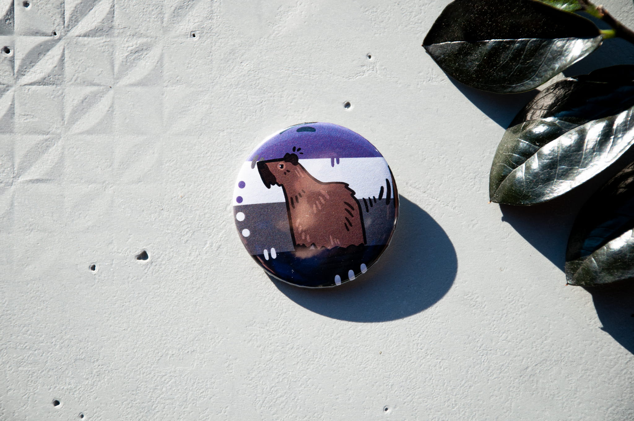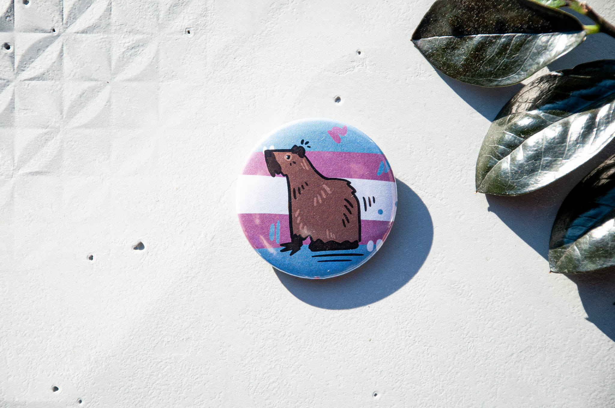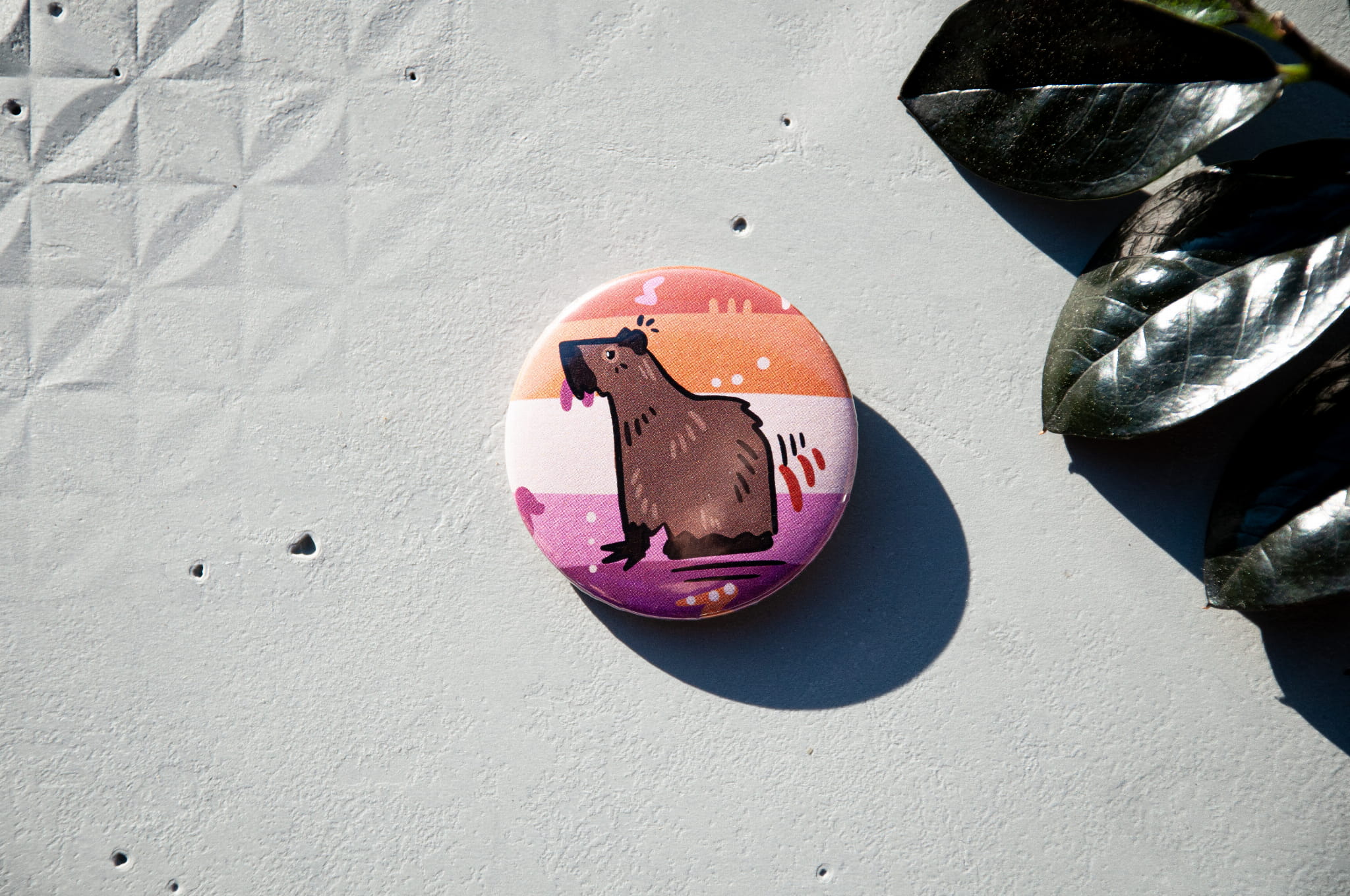 Wzbogać swoją kolekcję gadżetów LGBTQIA+ naszą przypinką o średnicy 44mm, przedstawiającą uroczą ilustrację kapibary na tle flag naszej społeczności.