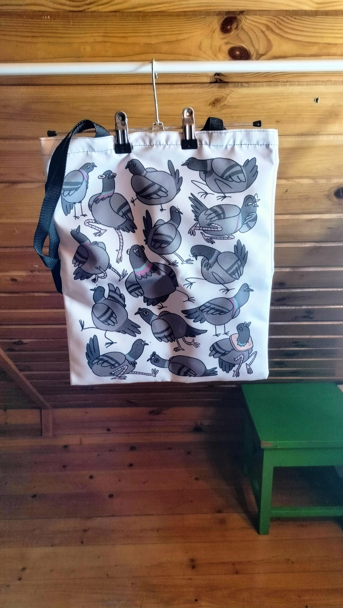 Torba fullprint - po obu stronach posiada nadruk ilustracji śmiesznych gołębi, projektu CiociKot.