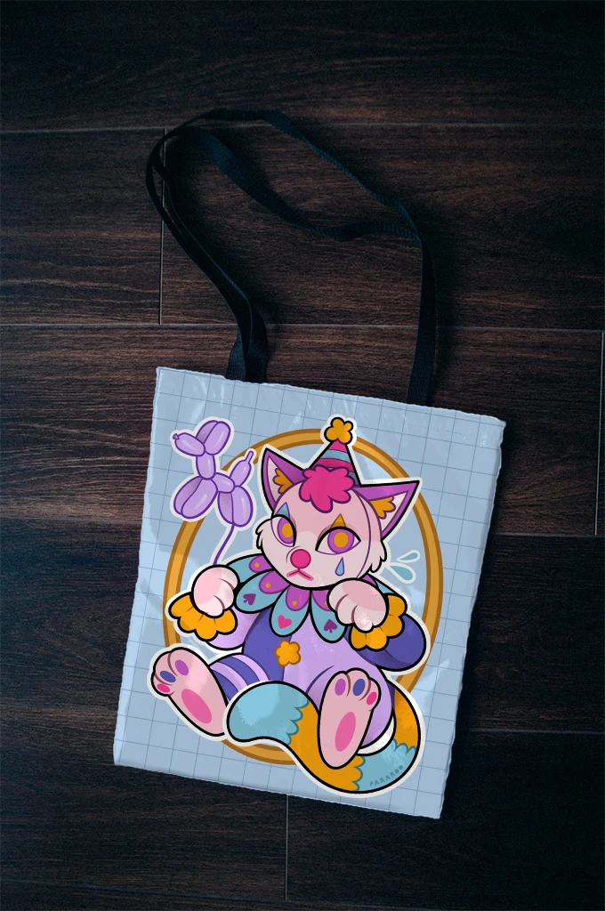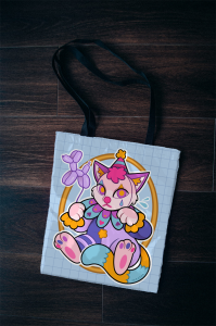 Torba fullprint - po obu stronach posiada nadruk ilustracji kotka-klauna, zaprojektowany przez Pararoo.