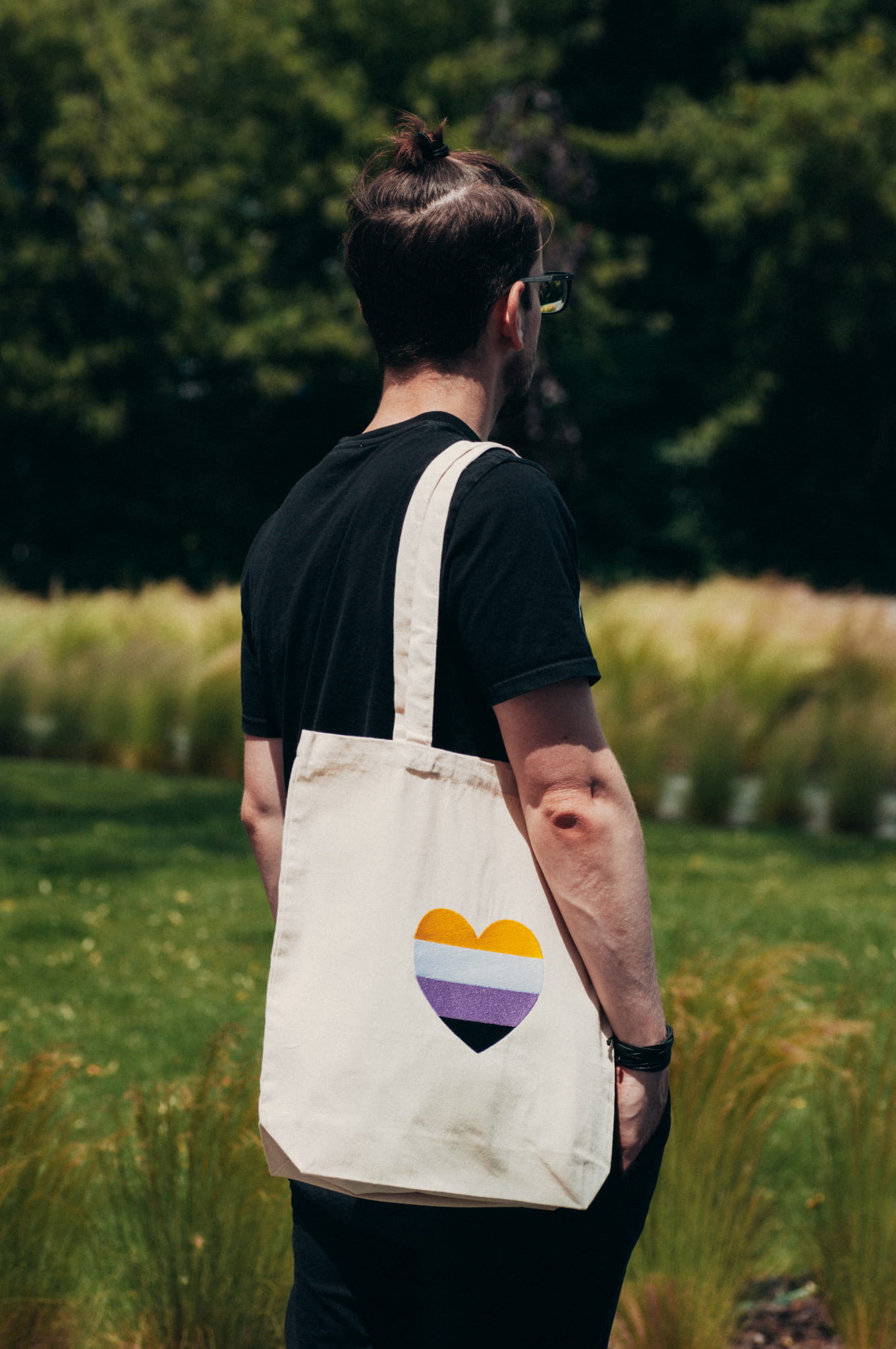 Torba płócienna haftowana, ze wzorem niebinarnego serduszka.